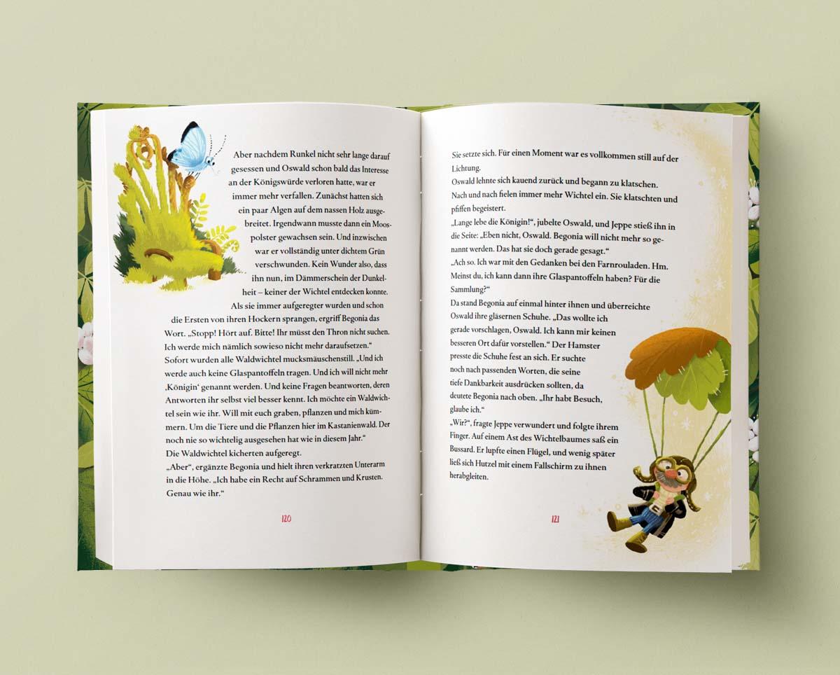 Unser zweiter Band beginnt mit einer ungeheuerlichen Entdeckung: die rüde und immer erdverschmierte Gartenwichtelin Runkel ist eine Prinzessin! Und als solche soll sie ihre Cousine vertreten, die verschwundene Waldwichtelkönigin.