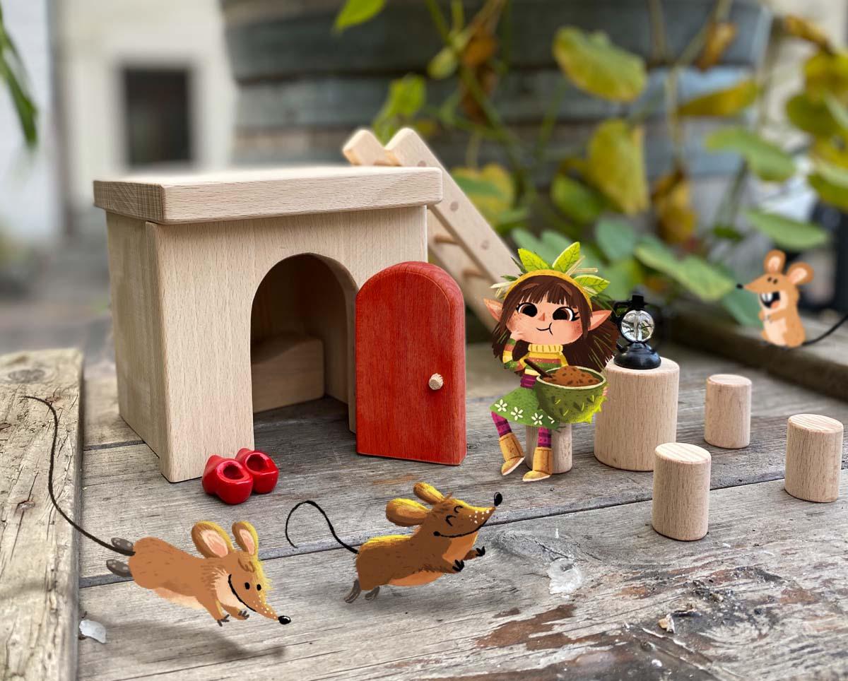 Gemeinsam mit dem Familienunternehmen „Holzspielzeug Peitz“ aus Ostwestfalen haben wir deshalb kleine Wichtelhäuser entwickelt, die überall aufgestellt werden können, um von Wichteln bewohnt und von Kindern bespielt zu werden.